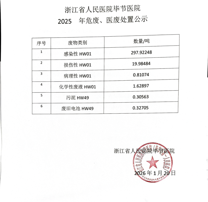 浙江省人民医院毕节医院2025年危废、医废处置公示